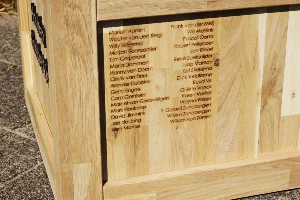 Om de boekenkist echt persoonlijk te maken heeft TinkerinQ de namen van alle raadsleden in de zijkant van de kist gegraveerd en op de deksel het wapen van Houten. De tekst ‘Houten Boekenkist’, in 3D en ook van massief eikenhout, op de voorzijde van de kist maakt het product helemaal af.