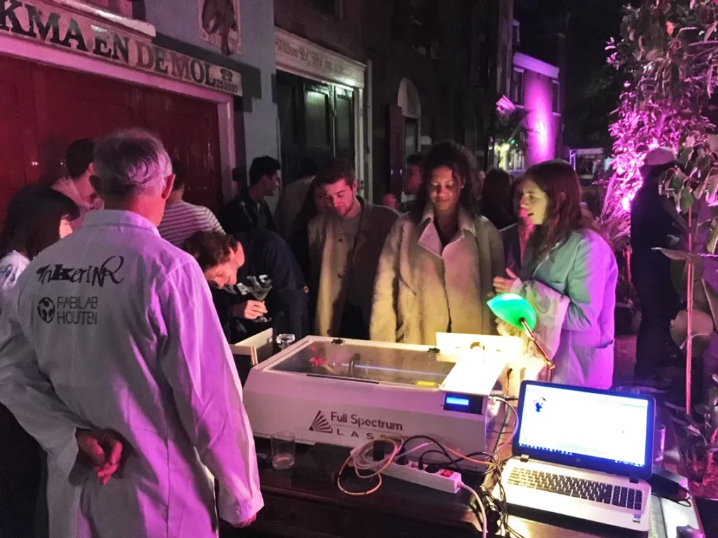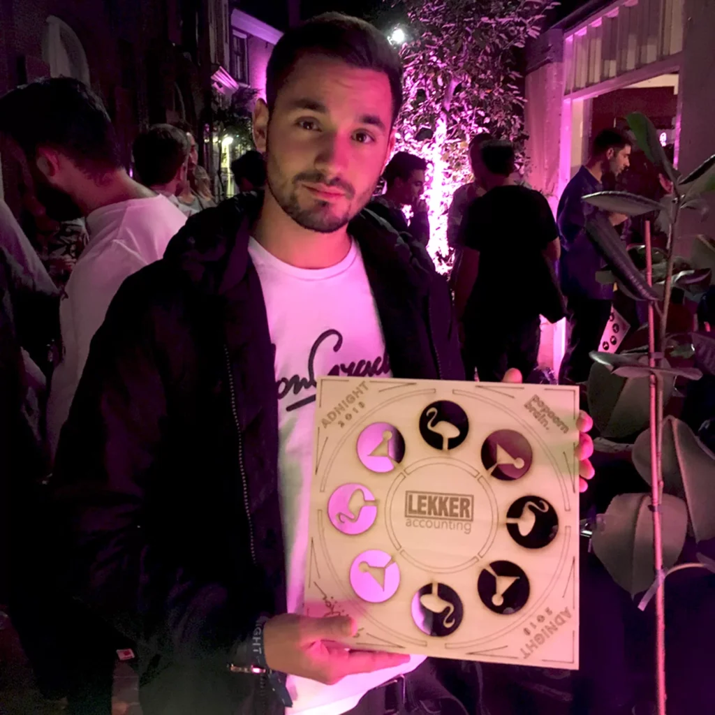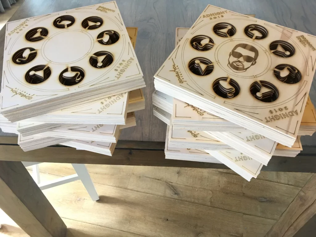 Afgelopen vrijdagavond was het in Amsterdam ‘AdNight’. Een avond waar reclame en event-bureaus zich presenteren. TinkerinQ heeft voor Popcornbrain.com op locatie logo’s van klanten op houten borden gegraveerd.